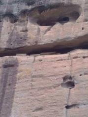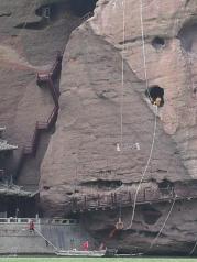龙虎山崖墓群主要在仙水岩一带的悬崖峭壁之上。岩脚下便是泸溪河,从泸溪河舟中或地面眺望,隐约望见一个个岩洞口或钉木桩或封木板,有很多崖墓。据说这些崖墓大多是春秋战国时期古越人的崖墓悬棺。与三峡地区的悬棺有点类似。