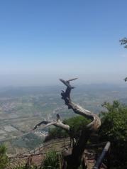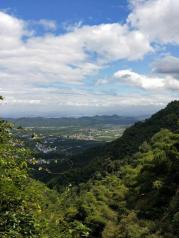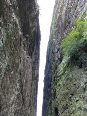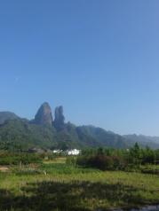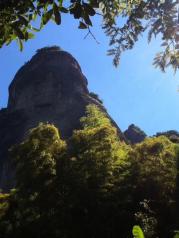早上8点30分从宁波出发,开了正好5个小时到江郎山景区。在游客中心买了车票换乘景区观景车,时间很巧刚进入候车点就有一辆车还有3个空位,我们3个人直接上车。车子在曲折的盘山公路行进,不时摇晃,人在车中感觉像是在摇篮里。公路很窄,只能容一辆车子行驶,遇到来车需要倒车到开阔地带,等对方车子开过才能继续行驶。10分钟后就来到开阔地带,我们下了车,开始步行向江郎山景点。