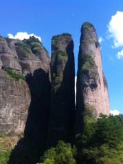 江郎山的丹霞地貌是世界文化遗产。进入景区坐接驳车到下客点,抬头仰望三爿石,雄伟壮观。一路登山,先看到会仙岩,相传八仙在此岩石下聚会下棋。是丹霞地貌的特有景观。一线天,令人震撼,高耸入云的两爿石,中间居然留了狭小的缝隙,走过百步梯,到达登天坪,望着蓝天白云下的三爿石,不禁感慨“造化钟神秀,阴阳割昏晓”。霞客亭,是观赏三爿石的最佳点,不愧是徐霞客留下的足迹。选择走路下山,一路溪水叮咚作伴,竹林摇曳,风景这边独好。快到山脚一大片清澈的湖水映入眼帘,便是须女湖了。传说中的须女就是化作一汪湖水陪伴在江郎身边。江郎山山青水秀,景致宜人,值得一游。