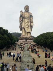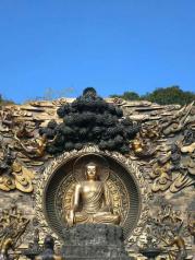 灵山大佛所在位置系唐玄奘命名的小灵山,故名灵山大佛。可见三山环抱,灵山大佛巍然屹立,气势雄伟壮观。九龙灌浴国内最大的音乐动态青铜雕塑群,再现了释迦摩尼诞生的场景。