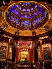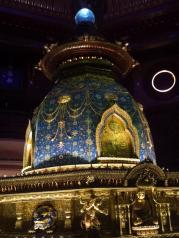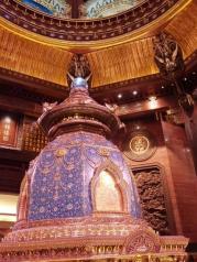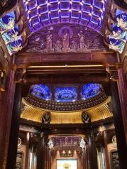 灵山梵宫是世界佛教大会的常住地。 金碧辉煌,建筑上的精雕细工加上现代化的灯光效果,营造一种神秘朦胧的佛教气氛。 人在其中感觉到就像佛教的天堂一样。