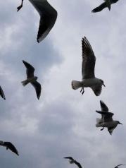 驶入到鼋头渚湖中央,数以千计的红嘴鸥围绕着船四周,竞相争夺游客投喂的食物,能如此近距离的接触这些来自遥远国度的红嘴鸥还是第一次。