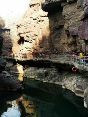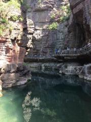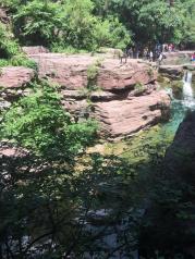 一进到云台山红石峡的景区,先传来一股淡淡的清香,闻起来特别舒服。下到峡谷里,到处都是红色的石头,水也不少,好多瀑布。茱萸峰景点有玻璃栈道,长度算挺长了,不好的是上玻璃栈道要穿鞋套,5元一双,穿完再还回去。这个应该免费,算景区服务的一项啊。但不得不说的是云台山景区的整个管理很好,还没入景区就有大巴往返各个地区,不管住哪还是去哪个景点都很方便。而且对当地的家庭旅馆管理也挺严格,值得其他景区学习。
