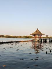 大明湖景区,和闺蜜两个人做的夜班火车去的济南 到了第二天早上七点多的时候才到 下了火车直奔早点摊 吃完之后 询问早点摊的摊主 大明湖 一指就在前面 因为是从济南站东出来的 很方便 进了大明湖 发现全身老年人在健身 太阳才刚升起 湖面上都是金色的阳光 慢慢的往前走 并没有将整个大明湖绕完 只是扰了一半 让就从正门出去了!直奔趵突泉