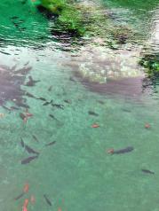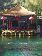 趵突泉,来济南第一天就去了趵突泉,下午三点多到达但人依然很多。趵突泉一共三个泉眼,虽说大不如以前了,但毕竟对于第一次去的我来说看见还是蛮激动的,泉水很清可以清晰看到里面的鱼。小的水眼也汩汩冒水,整个形成了一种动态的水流,看得人有一种感动的情愫。总体来说趵突泉还是很值得一看的,推荐!