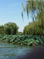 大明湖位置济南市中心,一城山色半城湖,山东之明珠。感觉很适合溜溜达达的。安静。 很喜欢。非常漂亮的大明湖,里面满眼绿色植物,照相很美。