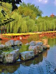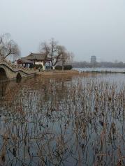 大明湖是济南的三大名胜之一,据说久旱不涸,淫雨不涨,蛙不鸣,蛇不现。*冬季的大明湖,没有了荷花,柳树也没有了绿叶,但也挺美的。夏天的大明湖景色比较好,尤其是七八月份会有荷花展,美极了。