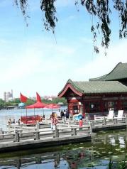 大明湖是济南市区的天然湖泊,泉城三大名胜之一。湖面宽阔,风景秀丽,很吸引人。【介绍】南宋时金国南侵,淮河以北被占,金人称此湖为大明湖,大明湖名称就一直沿用了。