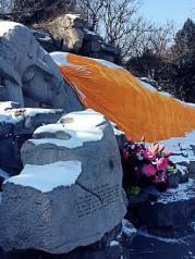 大明湖从西南门进入大明湖,里面正对着我不长的道路尽头,是一块巨大的影壁,上面是毛主席题写的诗词。出来的时候我看到有各单位各团组织前来这里宣誓等活动。
