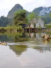 鹅泉离靖西市不远,大概20分钟车程,个人感觉景色还是不错的,山清水秀,有小桂林之称,有山有水有花草。只是门票有点小贵,要是稻谷成熟的季节来,更是风光无限好呀!值得一游!