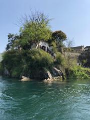 桃花潭到达景区9点半左右,进去就开始下起小雨,先看到的是一片桃林,再往里是瞿氏宗祠,然后要走一段路(下了雨有点泥泞)到达码头乘船去岛上,里面是汪伦墓和一些观景平台。因为下了雨景色非常优美,潭水非常清澈
