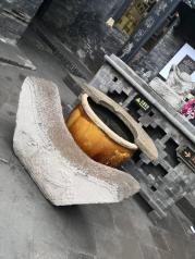 小雨中的平遥古城,显得是格外的干净,被雨水冲刷的一尘不染,整个街道闻起来空气都是格外的清新。平遥古城算是保存比较完好的一座古城,古城里的装饰显示出山西商人的特有风格,有很多银元宝的石雕,就是很好的例证。