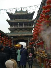 平遥古城主要街道是翻新后的, 去时正在下雪,道路清理不及时,商店的老板比较热情,但价格都比较贵,古城比较大,可以逛几天,清早起来想站在城墙上看日出,结果城墙八点才开放,那时太阳早就升起来了,只在城外看了下