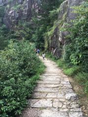 徽杭古道想了很久要来徽杭古道,这次带10岁小朋友一起去,也是一次很好的锻炼。从绩溪走到蓝天凹再返回,中途吃了个中饭,早八点出发,下午五点到景区入口。去的时候小朋友精神百倍,信心十足,还抢着帮忙背包,回来时只能驻着拐杖蹒跚而行。好在总算都走下来了,往返30公里,不光小朋友累,我也是累的。全程风景还是不错,有潺潺流水声,悦耳鸟叫声,还有奇峰异石,听说到五月时候,还会有满山的映山红,那时更是美丽吧
