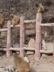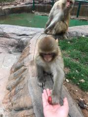 五龙口景区的猴子很聪明,会抢吃的。安全起见拿棍子,有卖的可买可不买,所以拿吃的不要逗它,喂他吃的时候他会盯着你手里的,漫山遍野都是猴子,所以拿吃的的时候小心猴子偷袭,只要不是吃的猴子都不会太感兴趣,拿手机拍照的时候最好小心点,一般没有多大问题。想走路就走路,想坐观光车10元一坐(不是来回)。上金鸡岭有两条路,一个是走台阶将近700多个台阶,上边是电梯来回一人30,爬山的话就台阶的路口往后走一个路口,可以爬金鸡岭2000多米再往后另一个路口是猴子表演的山头步行2个小时,可坐观光车,山顶猴子表演,为小猴子捐款(可捐了不捐,如果你看到这么可爱的小猴子忍心的不捐话,随你)