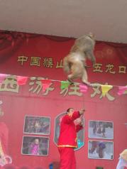 和同事们一起去的五龙口,大人孩子十个人,最开心的是孩子们了,总想喂猴子吃东西,猴子真多,而且会抢东西,尤其是塑料袋,亲眼见有人被抢,抢了就开始吃东西,还有猴子表演,挺好玩的,值得带孩子去看看。景色是非常的不错,这儿的山也属于太行山比较巍峨