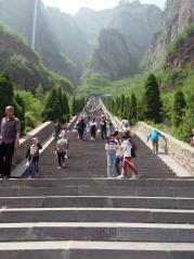 五龙口景区不算很大,进门可做小交通到猕猴王国,步行则需20分钟。猴子数量不少,也比较凶猛。从猕猴王国出来后沿台阶登山,到达电梯(单程线路,电梯上山后可继续游览,并坐滑道下山,不坐电梯需要原路下山)。下山后可继续坐小交通,经十里画廊(临山公路)到达猴戏表演处,若步行则需要近40分钟。猴戏表演也还不错。看完后可做观光车或步行原路返回。山谷对面杨广古道尚未开放。景区总体尚可,但路线多为单行,景点连接为公路。