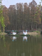 溱湖国家湿地公园从上海开车到溱湖湿地公园,整整开了七个多小时,还好赶上最后3点半入园的船,否则要有3公里才能到景区,进入公园后先参观湿地博物馆,然后再坐电动船看了麋鹿和黑天鹅,里面空气很好