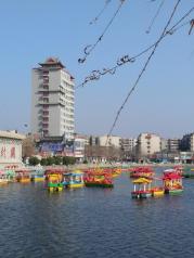 火车站坐双层的观光一号线到开封府。现场买票有点贵,最好网购。开封府在北宋时期的地位相当于今天的北京市政府,不过这个只能算一个大号的主题公园。完全没有历史,只能说尚可一观。运气好还能看见模仿当年的包拯审案,而被告多半都是陈世美。