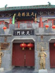 天波杨府,因城西北天波门的金水河旁,故名“天波杨府”。现在的天波府是在1992年重建的一座仿宋园林楼阁建筑,由东、中、西三个庭院组成。中院杨家府衙,是天波杨府的主体;西院杨家花园;东院演兵场,是杨家将操兵练武的场所。在天波府,听天波府故事,看府中美景,情景交融,别有一番趣味。