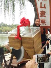要说开封最出名的地方是哪儿,一定是开封府。从小就看包青天的电视剧长大,那个头上有个月亮的黑脸汉子让人莫名有好感,甚至有以一种依赖感,总感觉他就是正义的代表。长这么大能让我有这种感觉,除了包公,就只有孙中山先生手书的——天下为公四个大字能让我有相同的共鸣。到现在我都有一个疑问,一个大大的疑问,就是包公当时的官到底大不大。说大吧,又都好几品了,说不大吧,皇帝御赐的虎头铡,可以先斩后奏,想想都牛叉。说到这,开封府的虎头铡可是必须去看的东西,拍游客照除了包公本人,就属这儿最正宗了。 话说回来,开封府自古被誉为天下首府,目前混了个AAAA级景区。据说开封府一共有过183为府尹,最牛逼的肯定是包公了。现在