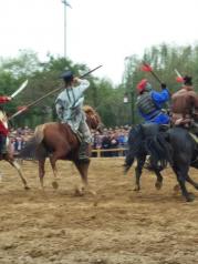 《天波杨府赞雄风》西临清明上河园,东卫北宋古皇宮,座镇西北金水河,天波杨府赞雄风,战功卓著老令公,大郎赴会替太宗。二郎替代八贤王,三郎马踏亡军中。独闯敌营杨七郎,六郎拒诱忠主公。五郎斧劈萧天佐,七娘打败马吐温。八姐刀取耶律方,棍打辽帅夸排风。穆帅大破天门阵,天波杨府世代忠。感动皇帝宋太宗,题匾赐府表精忠。文武官员下轿马,路过杨府须毕恭。杨门雄风传天下,保家卫国一门忠。