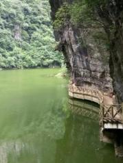 在贵阳时间富裕一天,就近找到了这个南江大峡谷景区,没想到是一个惊喜。梯子岩没上去,好像就是度假村。沿着栈道一直走到鸳鸯湖,两边是高山,中间的河水时而湍急时而平缓,不时有白色的鸟略过,还能听到远处的鸟鸣。可惜的是还得原路返回,要不然坐船50才能回到景区门口。河流中还有捕鱼的高手,据说一斤鱼可以卖三十,买了炸的小鱼,十块钱两条,味道不错。有一个亚洲最大的钙化瀑布,金钟瀑布,很好看。贵阳到这里漂流和玩飞拉达的人很多,都是刺激惊险的游戏。适合年轻人。80块钱一晚的农家院感觉超级棒,吃了老板家的大公鸡,早晨另外一只也不敢打鸣了,自己下厨,把老板都吃香了。