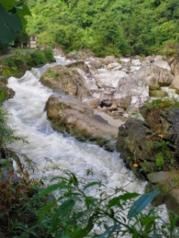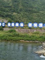 南江大峡谷地处开阳,风景甚佳, 山水依傍,可行可舟。 清泉石上,栈道曲折, 室气清新,鸟鸣树丛。 木屋别趣,拓展亦然, 朝暮不同,举家之走。