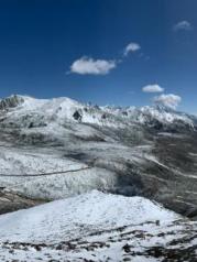 折多山是川藏线进藏的第一座高山。山上空气稀薄,下车走动时,已明显感受到呼吸比山下急促了很多。眺望绵延的群山,远处是白茫茫的雪。近处,是未被雪覆盖,遗漏的黑褐色的山岩。