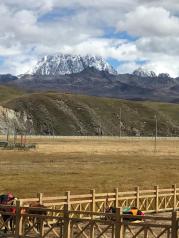 塔公草原的草变成了金黄色,倒是另外一番光景。人依旧不少,去山顶需要骑马过去,不少藏民牵着自家的马匹四处揽客,马一边走一边拉,到处都是马粪,要低头看着路走。在草原上,抬头就可以看到雪山,景观良好。