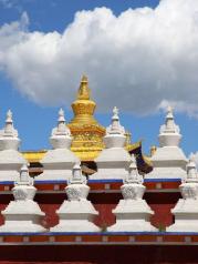 塔公草原不只有草原和雪山,还有一座用了108斤黄金贴顶的佛塔。过新都桥后北行37.3公里到达塔公寺。沿线的河流、草原、森林、山体、寺庙、藏房建筑和浓郁的藏乡风情构成该景区