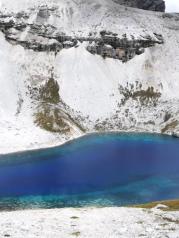 五色海木底措正好位于先责任山与其他一个山的中间,在当地也是非常令人信仰的一个山。同时他在阳光的照相实际上呈现出5种不同的色彩,甚是好看。景色也是比较美的,在晴天的情况下能够看出水湛蓝湛蓝的,像一个蓝色水晶一样。