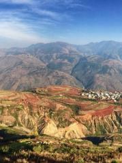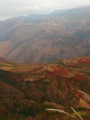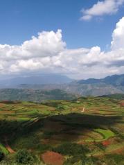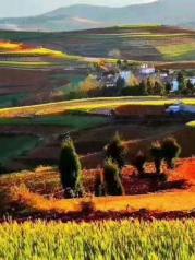 东川红土地离昆明三个半小时车程,可能是因为非旺季,景色一般,图片需要增色才好看。其实在沪昆高铁上就可以看到类似的风景,不是特别值得坐那么久车去看。目前就是一个村落,不收费,不过落霞坡正在建设,估计这个点要变成收费景点了。