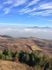 昆明开车过来东川红土地大约三小时,神奇的大自然调色板。我们去的那天是大晴天,有云雾或是雨后初晴的天气拍照更精彩。落霞沟已经造好木栈道了,估计不久就会开始收费了。摄影爱好者会选择住一晚,早晚的光线会更好些。当地的住宿就是农家乐,据说有两家四星级酒店已经在规划中了。