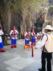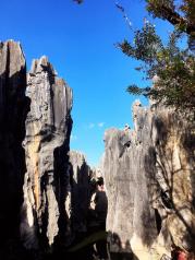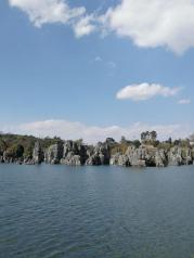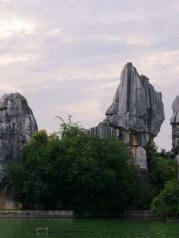 在大理古城参团到石林,九乡一日游,在这蓝天白云,阳光灿烂的日子里出游,令人心清气爽,进入国家地质公园_石林,看到了形态各异的石林,让人叹为观止哪!导游解说着各种石头的典故传说,更为这壮观的石林添加了神秘的色彩,实感不枉此行。 到了九乡更是令人惊叹不已!流光溢彩的溶洞内,自然形成的熔岩、溶柱、溪流、瀑布……可谓是鬼斧神刀的绝妙画廊。多彩的云南,值得点赞!