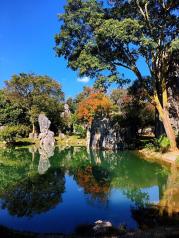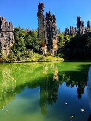 云南石林保存和展现了多样化的喀斯特形态,最吸引人的还是玉鸟池旁阿诗玛景区,也是石林的典型代表;这里的阿诗玛,经水面倒映出倩影,于是,回想着动人的故事,欣赏着美丽风景,便情不自禁驻足停留! 石林是一种林状喀斯特景观,高大的柱状、多段叠致,还有一片似举千剑的剑状石林,更有猫和老鼠捉迷藏、三藏取经、....,这些密密层层的石峰构成了一片石头海洋,而夹杂在富有意韵的石峰间,小径又交错崎岖,在这样的迷宫中,或许会迷失很多奇趣和精彩,所以最好跟着读懂石林的导游前行。