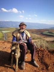 包车从昆明市出发,大约四小时抵达东川红土地。云南温暖湿润的环境,使昆明东川区土壤里的铁质经过氧化慢慢沉积下来,逐渐形成了炫目的色彩。这里方圆近百里的区域是云南红土高原上最集中、最典型、最具特色的红土地。虽然没有遇到蓝天、白云和变幻莫测的光线,但眼前的景色也足够壮观。 79岁的老人张东祥,是东川红土地的形象代言人。他说他是红土地的一个普通老农民,但他又是一个不折不扣的大明星,而且是上镜率最高的明星。老人经营一家客栈,但更多的时候他都坐在路边让来来往往的游客拍照,塑造了一位慈祥的东川红土地上的老人形象。他不计较报酬由游客随意给些小费,即便不给他也乐呵呵的和游客聊天。