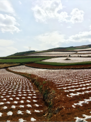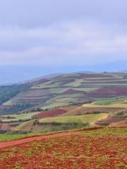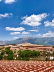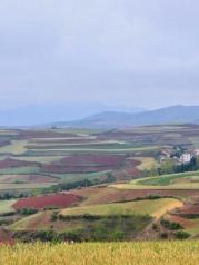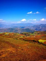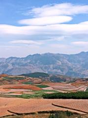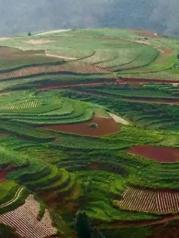 昆明东川红土地被誉为“上帝遗落的调色板”,堪称是全世界除巴西里约热内卢外最有气势的红土地。一片片种满农作物的红色大地上,风轻云淡,纯朴舒适,随处一瞥都是一幅幅色彩缤纷的画卷;而变幻莫测的光束,大朵大朵的云彩,将整片红土地装点得更为神奇,时时刻刻显露出不同的迷人姿色,为世人所倾倒。如果说巴西的红土地气势磅礴令人震撼,那么东川的红土地则是另一番壮美中又添柔情的景象。