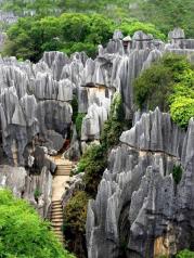 顾名思义,所谓石林就是石头形成的树林。位于云南石林县,是喀斯特地貌的精华。方圆几百平方公里内,怪石遍布。有的像人,有的像动植物。各种奇形怪状的石头集中在一起,十分壮观,堪称鬼斧神工。