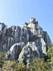 《七言排律。石林》 石头盆地大石林,天造奇观石海森。鬼斧神雕兵马俑,女娲巧塑冑甲兵。天兵天将天门阵,地笋地桩石柱城。万笏朝天象牙矗,八仙过海闹石林。阿黑勇敢阿诗玛,王母派来十万兵。千手观音挥玉臂,南天砥柱挂祥云。(祖国山水8O7)
