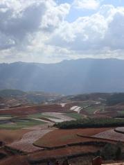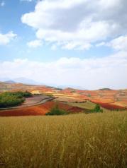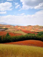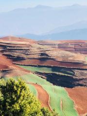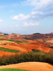 东川红土地位于昆明东北,公交不方便,包车出行首选,东川地处温暖湿润的环境,土壤里的铁质经过氧化慢慢沉积下来,逐渐形成了炫目的色彩。然后形成了色彩斑斓的地块地貌,远看被农田分割,蓝天白云映衬下,很漂亮。