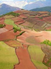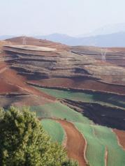 东川红土地方圆数百公里都是红土,往往一部分的红土地翻耕待种,另一部分已经种上绿绿的青稞或小麦,远远看过去,就像上天涂抹的色块。东川红土地,最美最集中也是最富有变化的地方,在出东川40余公里的一个叫花石头的村子周围,村子周围的地里一年四季长着不同的农作物,收的收,犁的犁,种的种,使红土地上的景色“活”了起来。
