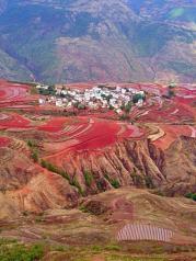 东川红土地如跳动的五线谱,如遗落的调色板,层层叠叠、错落有致。天光云影轻轻抚摸着红色的土地、绿色的青稞,散落在田间的村落如世外桃源般美丽。真是一个神奇的地方,有人说那是上帝不小心打翻了调色盘,我觉得不准确,在我看来,是庄稼人用勤劳的双手绘出的一幅幅精美的油画。