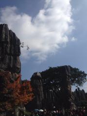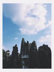 乘大巴快到石林景区时就感觉地里开始涨出各种各样的石头。景区蛮大的,一路走一路欣赏各种形态的石头,当然主要是靠想象力。龙云题的“石林”、阿诗玛等是标志性的地方。云贵高原一向是天高云淡,蓝天白云下的石林,形态各异鬼斧神工!