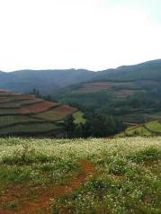 “如果上帝也会作画的话,那他的画是怎样的呢?我不知道,但我知道东川红土地一定就是他打翻的调色盘。” 原本还期待着,红土地真的如传闻中上帝打翻的调色盘和图片中所见的那么美丽,只是天公不作美,这一天整天天气都是灰蒙蒙的,阳光变得宝贵,红土地的美丽也因此藏匿起来。 说起这次行程,同行的人倒是挺有趣的。司机是邝老板,他经常组织客栈的人出去玩,是个云南通。两个北京来的阿姨,一个跟邝老板一样有童趣,喜欢小花,喜欢拍广告牌,一个是又吸烟又喝酒很酷的一位阿姨。还有一位是与我同龄,在北京读大学的哈尔滨小姑娘。 路上遇到的大绵羊和放羊的老爷爷才是这次行程的亮点,红土地的颜色,远没照片上看来那么的鲜艳。