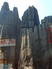 石林位于昆明市东,是世界罕见的风景名胜,是大自然鬼斧神工杰作。在广达400平方公里的区域内,遍布着上百个黑色大森林一般的巨石群。有的独立成景,有的纵横交错,连成一片,占地数十亩。只见奇石拔地而起,参差峥嵘,千姿百态,巧夺天工,被人们誉为“天下第一奇观”。