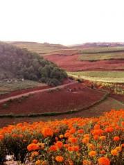 无意中看到东川红土地的照片,一下子就被她斑斓的色彩所吸引。去的时候正值9月,天气时阴时雨,太阳只是偶尔探一下头,就又被云雾遮挡,不过红土地还是展示了她令人眩目的色彩。有人说这里是上帝掉入人间的调色板,我想说这是人类用智慧在不经意间以大地为画布、以自然为颜料絵出的美丽画卷。