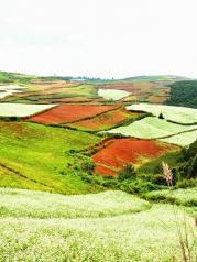 东川红土地旅游客人不算多,还没有被大量开发的原始村庄,由于没有得到重视而渐渐丢荒很多农地,原有的景色还努力地保留着,能显示着中国大好河山的蓬勃气势,在天地之间静染色彩斑斓的大地,犹如上帝打破了染料,洒在这块海拔2500的净土之上,当灿烂阳光洒向大地上,绚丽多彩的红土地上更显靓丽无暇,当阳光被厚云覆盖是,你又静静地期待阳光再现,更上色彩…… 静静地看着这始起彼休的循环美景,无不赞叹云南东川红土地的壮观 建议:到昆明北部客运,每天有两班车,早上7:30 8:30 可以直达东川红土地,我们住在红土人家宾馆,也是一个农家乐店家电话:15288366915 张 老实人家,靠谱连导游景点介绍,包车全部完