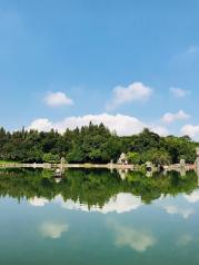 石林远看大石头,近看石头大,果然大石头,石头确实大。去的那天天气非常好,晴天碧水,白云倒映在清澈的湖中,在大石林里面是可以逛好长时间的
