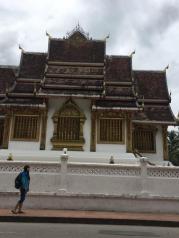 王宫博物馆还是挺大的,位置非常的好找,就在琅勃拉邦的最中间,在入口的左边是存包处,右边是一个金碧辉煌的寺庙,然后往里走正中间是一栋居住的小楼,绕着走一圈就行了